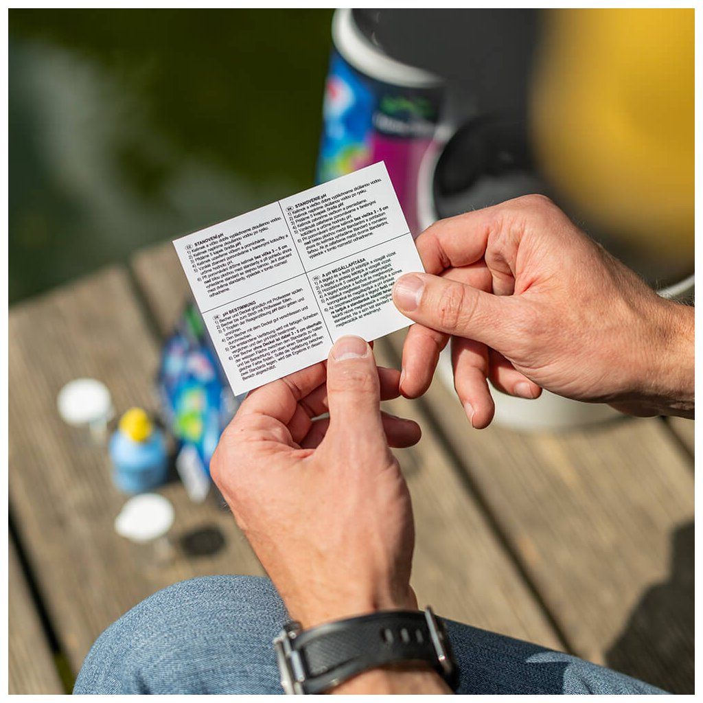 Správná úprava vody začíná přesným měřením. Tester pH Pond je jednoduchý na použití a nevyžaduje žádné speciální vybavení. Díky tomu snadno zjistíte skutečný stav vody a můžete se rozhodnout, zda je potřeba pH upravit. |