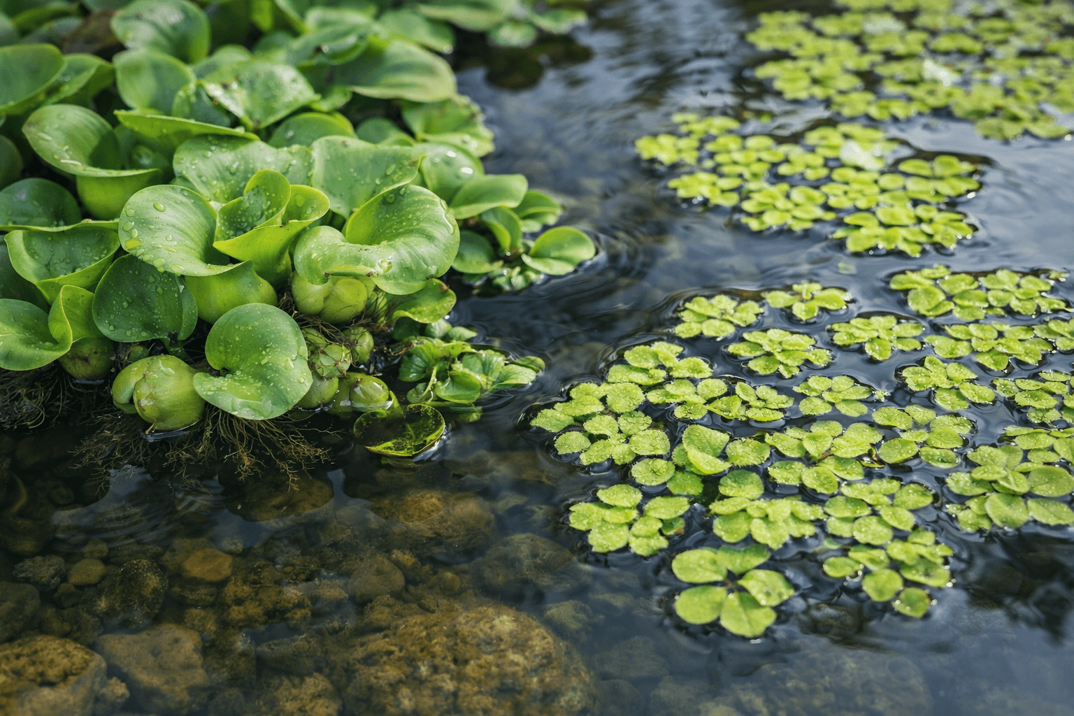 U plovoucích druhů, jako je třeba salvinie, voďanka nebo hyacint vodní, je potřeba hlavně hlídat, aby úplně nezakryly vodní hladinu. Částečné zastínění je fajn, ale jednolitá "zelená deka" už ne. Některé běžně prodávané volně plovoucí rostliny navíc nejsou mrazuvzdorné a je proto nutné je na podzim zkompostovat a další sezónu pořídit nové, než se je složitě snažit zazimovat.