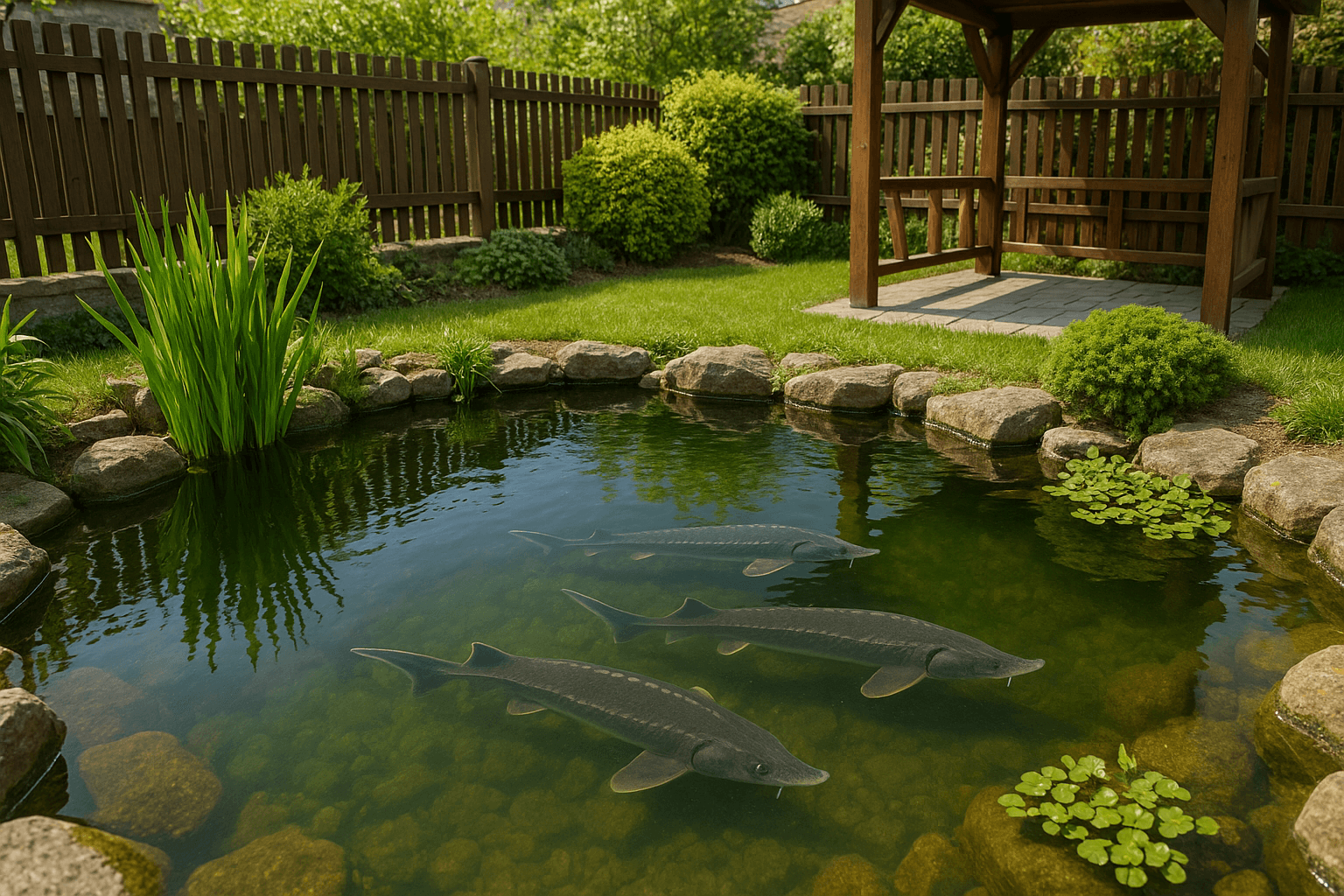 Jeseteři nejsou úplně ryby do malého zahradního jezírka. Potřebují dostatek prostoru, dobře prokysličenou vodu a hladké dno bez ostrých kamenů, o které by si mohli ublížit.